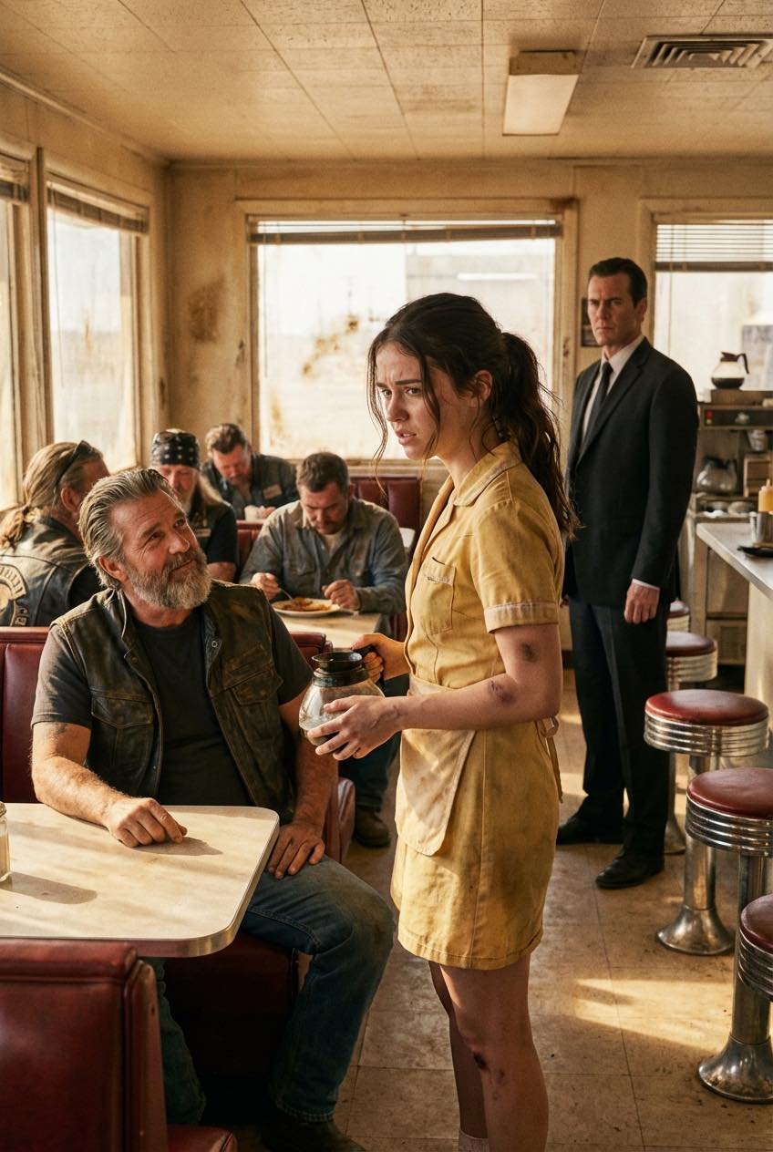 During a desert ride, a biker leader stopped at a small Arizona diner. He soon noticed a waitress quietly hiding a bruise on her arm,