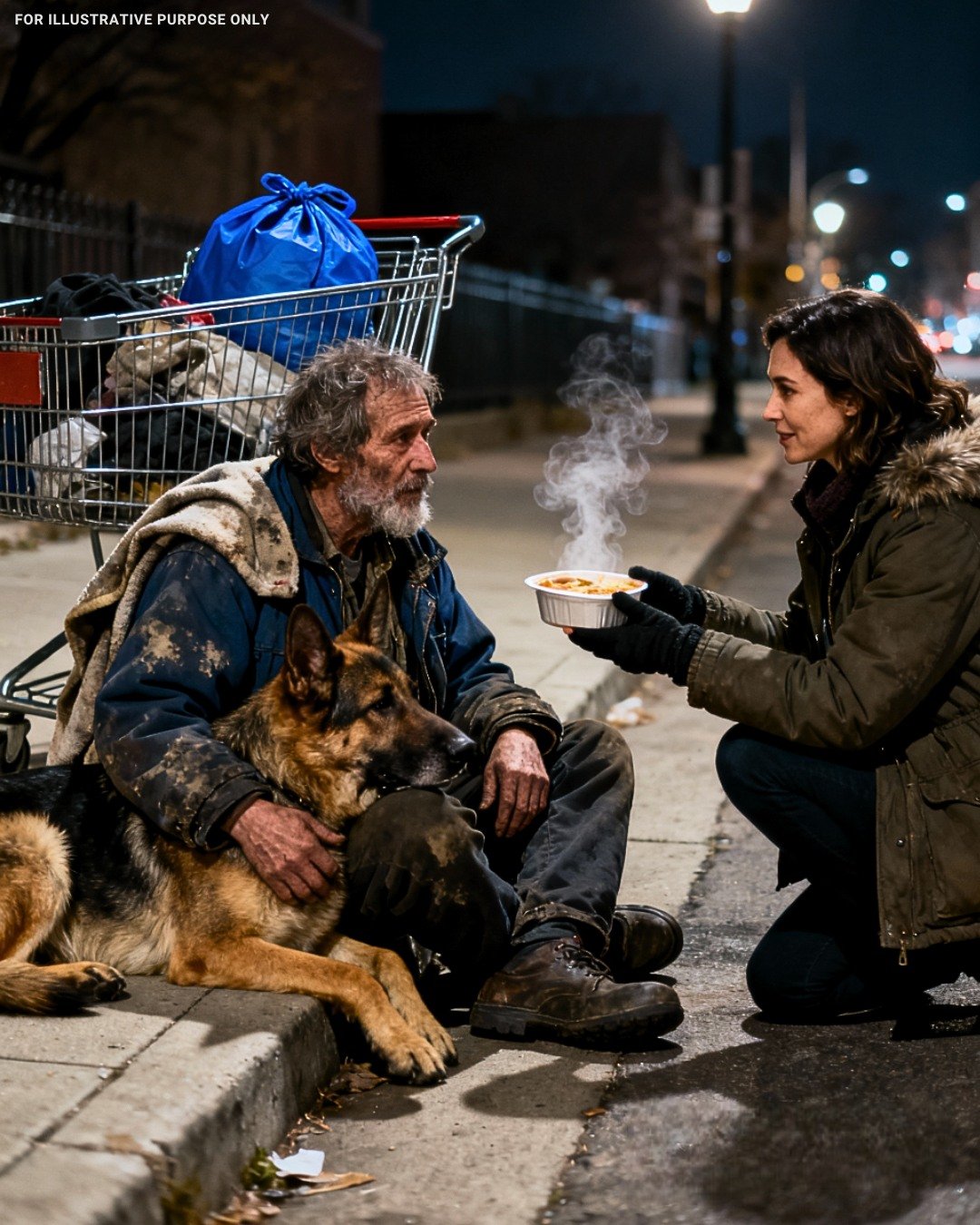 I hurried back inside, bought a hot meal — chicken, potatoes, vegetables — plus dog food and bottled water. The cashier gave me a knowing look. “Someone out there will be grateful.”