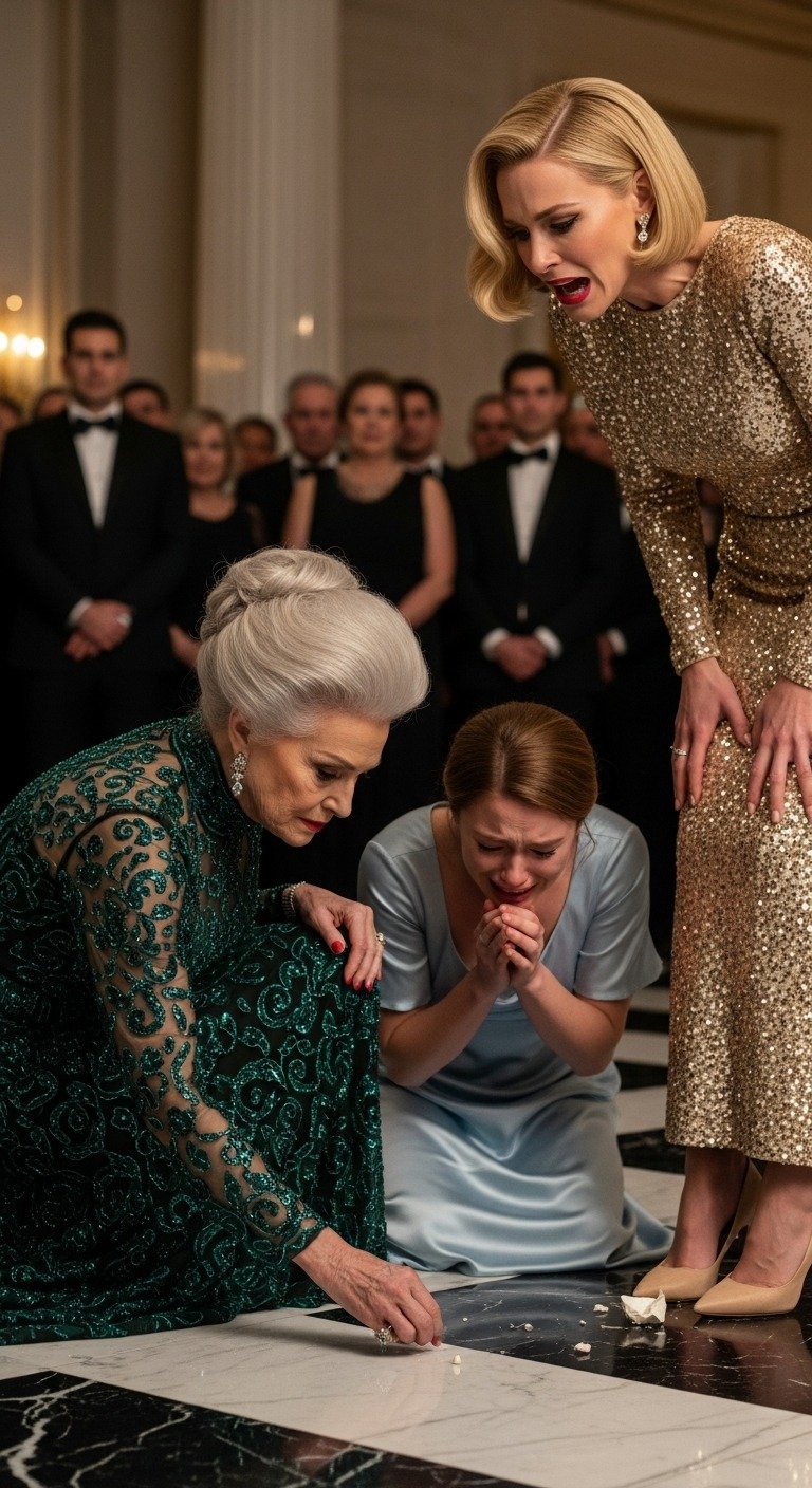 The entire ballroom held its breath. A waiter dropped a tray in the distance, the crash echoing like a gunshot, but no one turned to look. All eyes were on the matriarch.