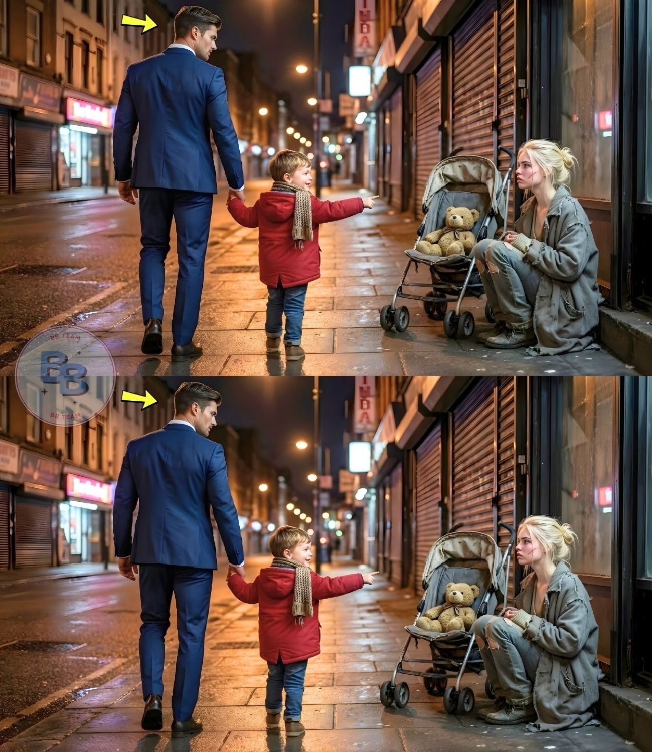 A rich man ignored the beggar until his son stopped, looked back, and said, “Dad, that’s mom.” Leo Blake held his father’s hand tightly as they exited the grand ballroom of the Blackstone Hotel. The building glowed behind them, golden lights spilling across the sidewalk. Men in suits laughed loudly near the valet.