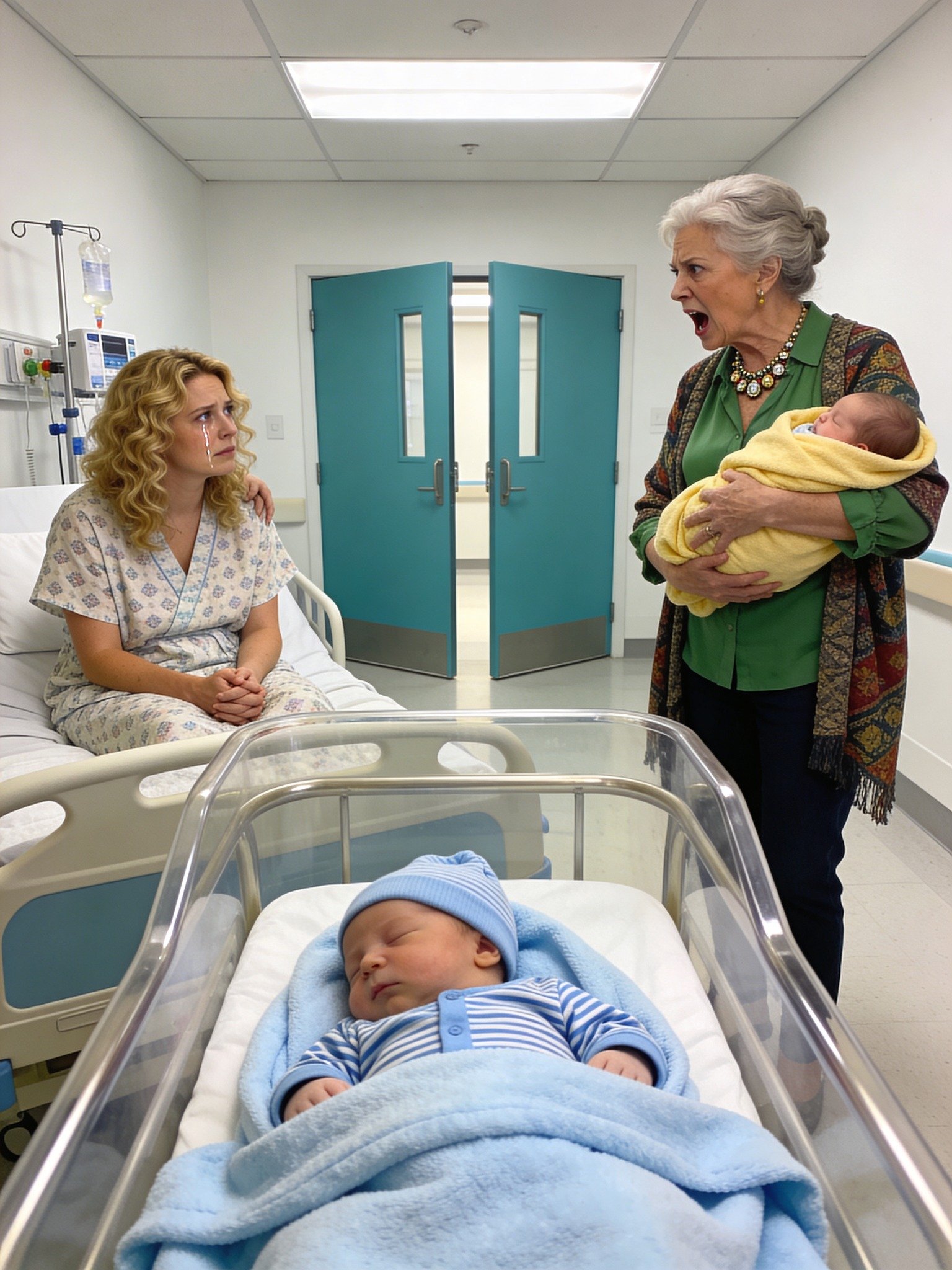 Only hours after an exhausting emergency Caesarean procedure, while residual anesthesia clouded my senses and my newborn twins rested against my chest, she entered my private recovery suite without permission carrying a rigid expression and an unsettling sense of purpose. The door closed behind her with a force that reverberated painfully through my still fragile body, immediately transforming the atmosphere from serene exhaustion into tense anticipation.