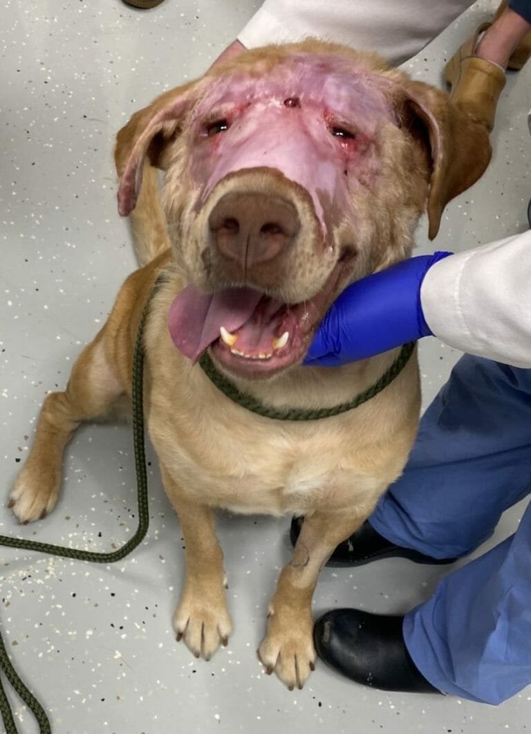 That was the case for one dog, who was the victim of a horrible attack in which his face was severely burned. But thankfully, he has since been making. a miraculous recovery, thanks to some kind vets.