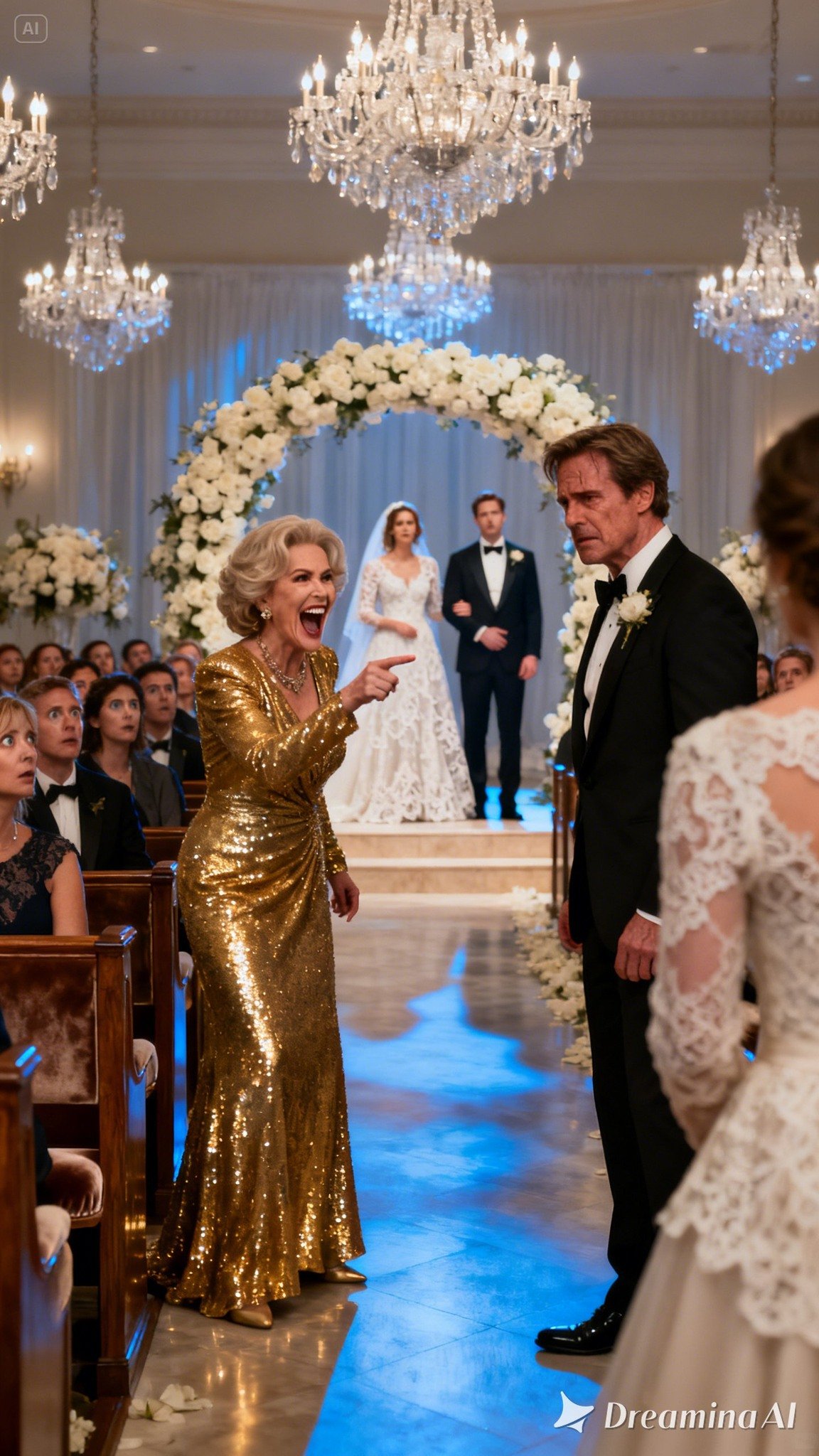 The organ music swelled, a majestic, rolling tide of sound that filled the cavernous wedding hall. It was a space designed to inspire awe and,