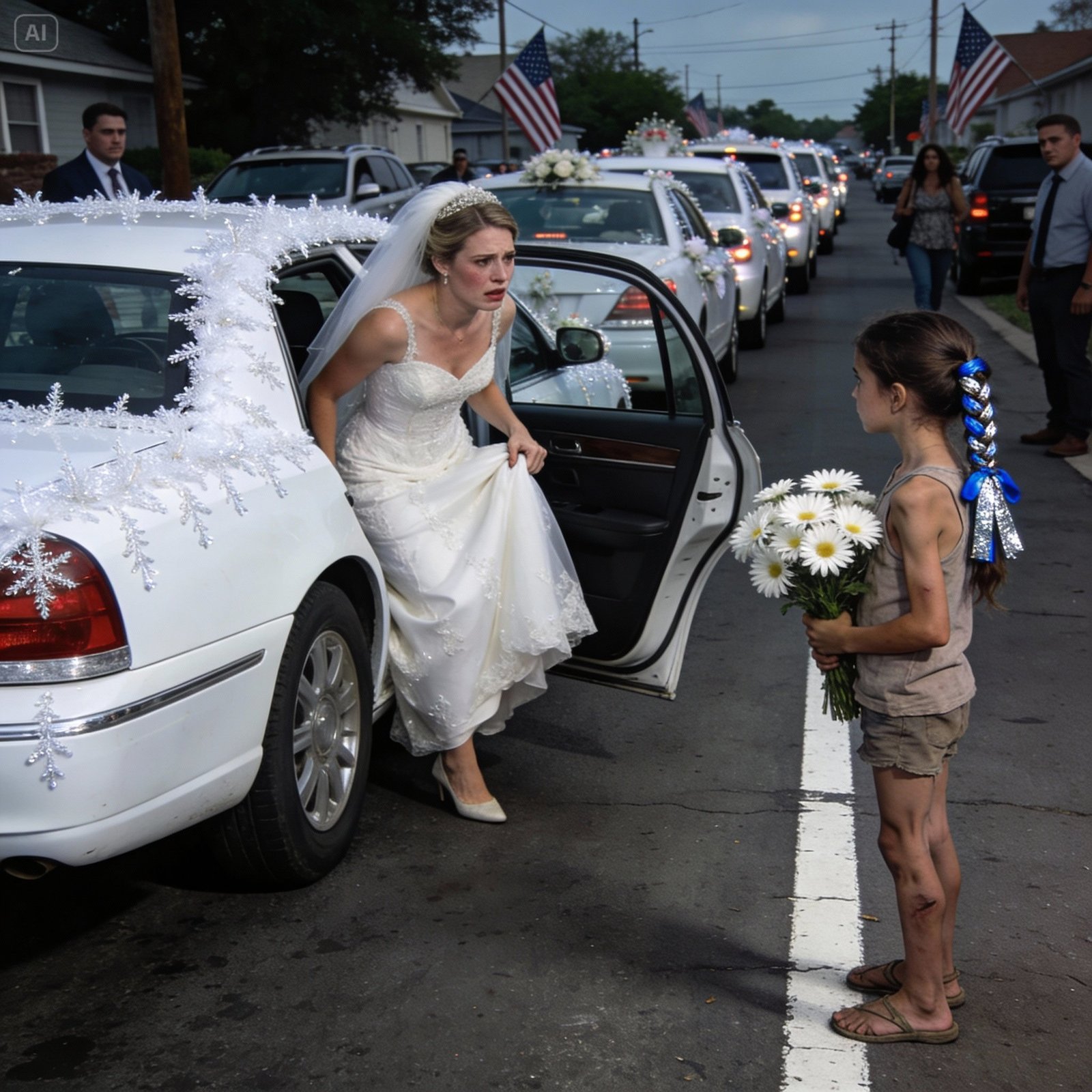 A little girl approached my wedding motorcade holding a bouquet of daisies and asked for a few coins.
