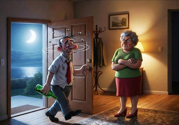 Bob stumbled home late one night, very drunk, barely managing to kick off his shoes before collapsing into bed beside his sleeping wife. Within seconds,
