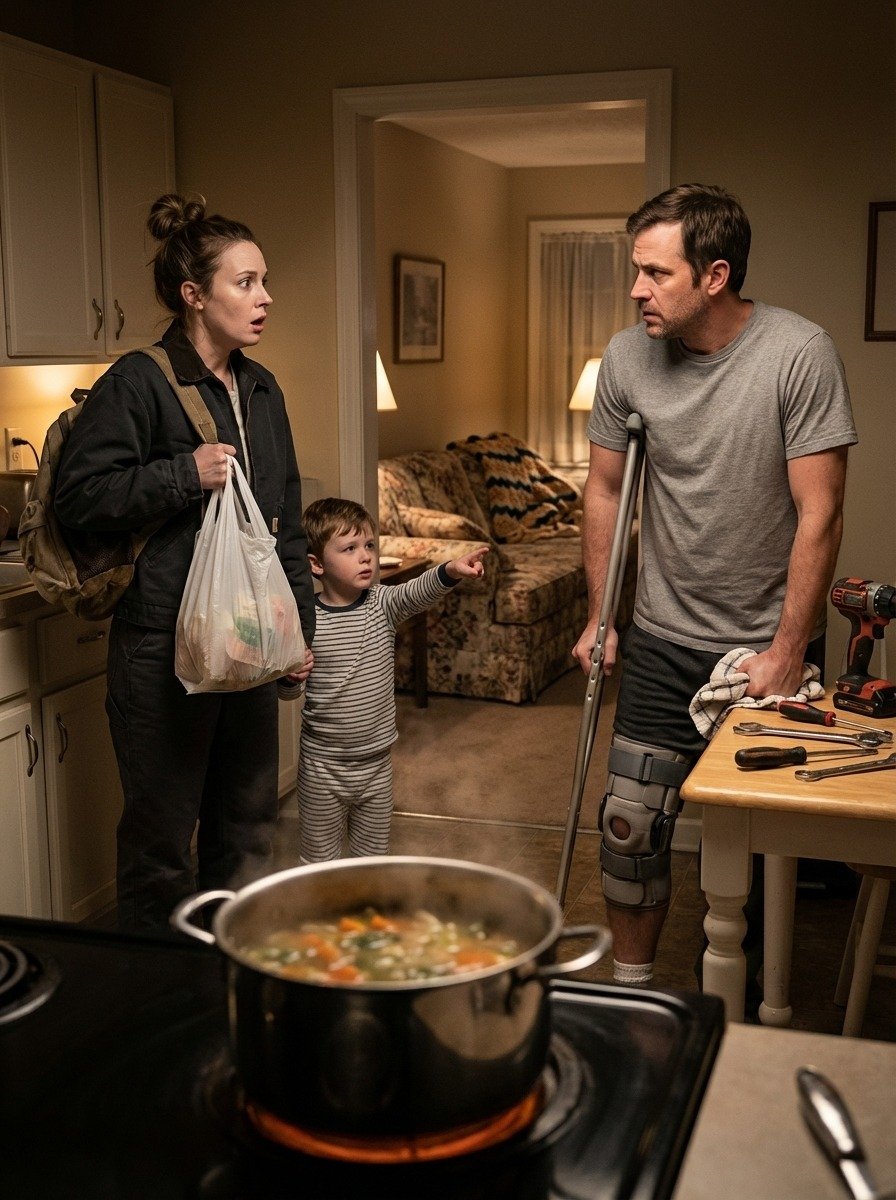 I took in a homeless man with a leg brace for one night because my son couldn’t stop staring at him in the cold. I left for work the next morning expecting him to be gone by evening. When I came back exhausted, my apartment didn’t look the same—clean counters, trash out, the door fixed, food simmering on the stove