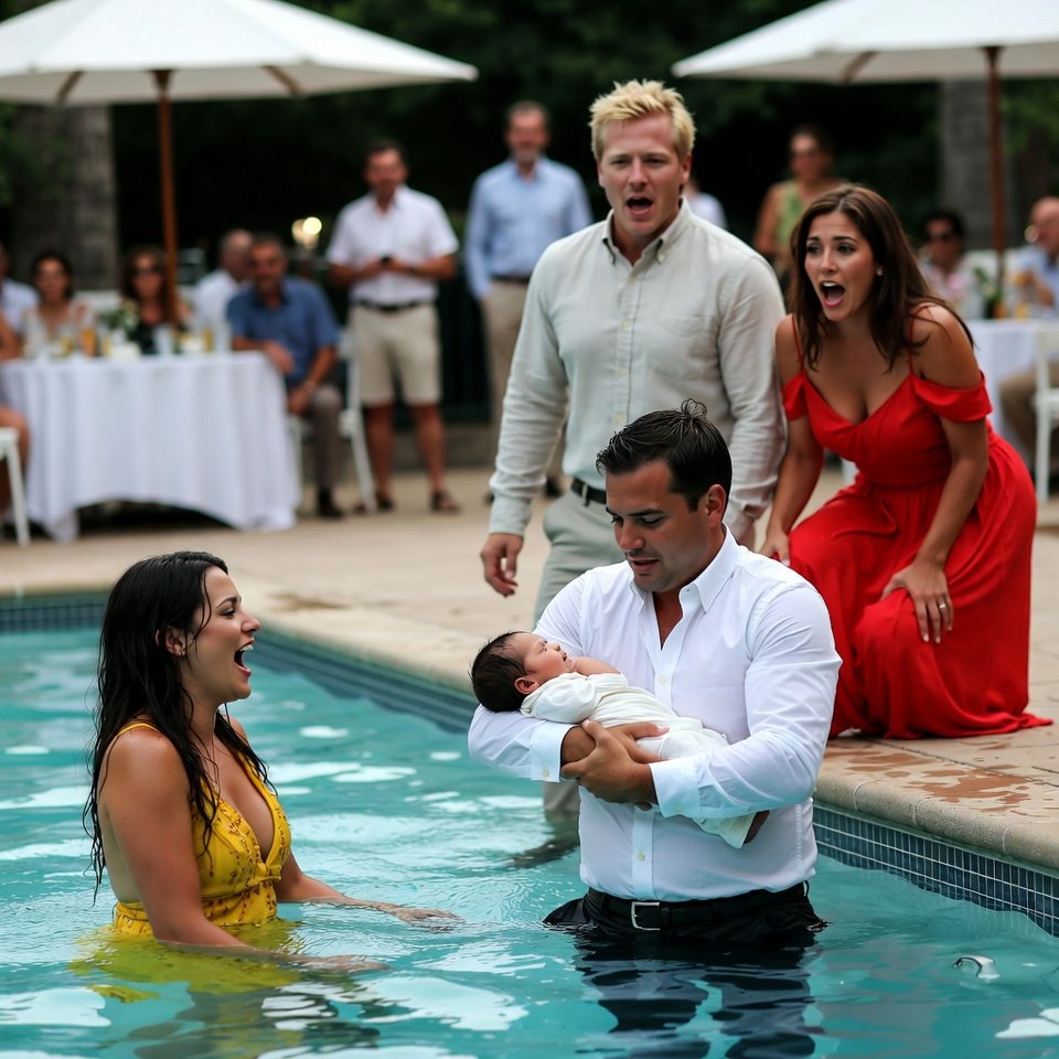 He caught sight of Isabella struggling in the pool, and without a moment’s hesitation, dove in.