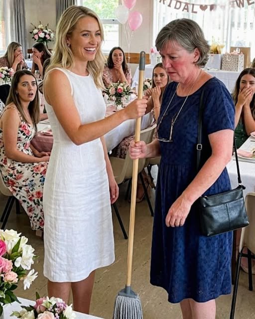 She bent, picked up a mop from near the catering station, and walked straight toward me — not toward the staff, not toward the host, but toward me.