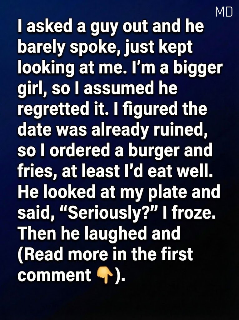 When the food arrived, she felt a small sense of comfort return. But just as she reached for a fry, he looked at her plate and said, “Seriously?” The word hung in the air longer than it should have. For a second, everything inside her stilled. She prepared herself for disappointment, for confirmation of all the doubts that had been building quietly in her mind. But then, unexpectedly, he laughed—not in a mocking way, but with a kind of lightness that broke the tension.
