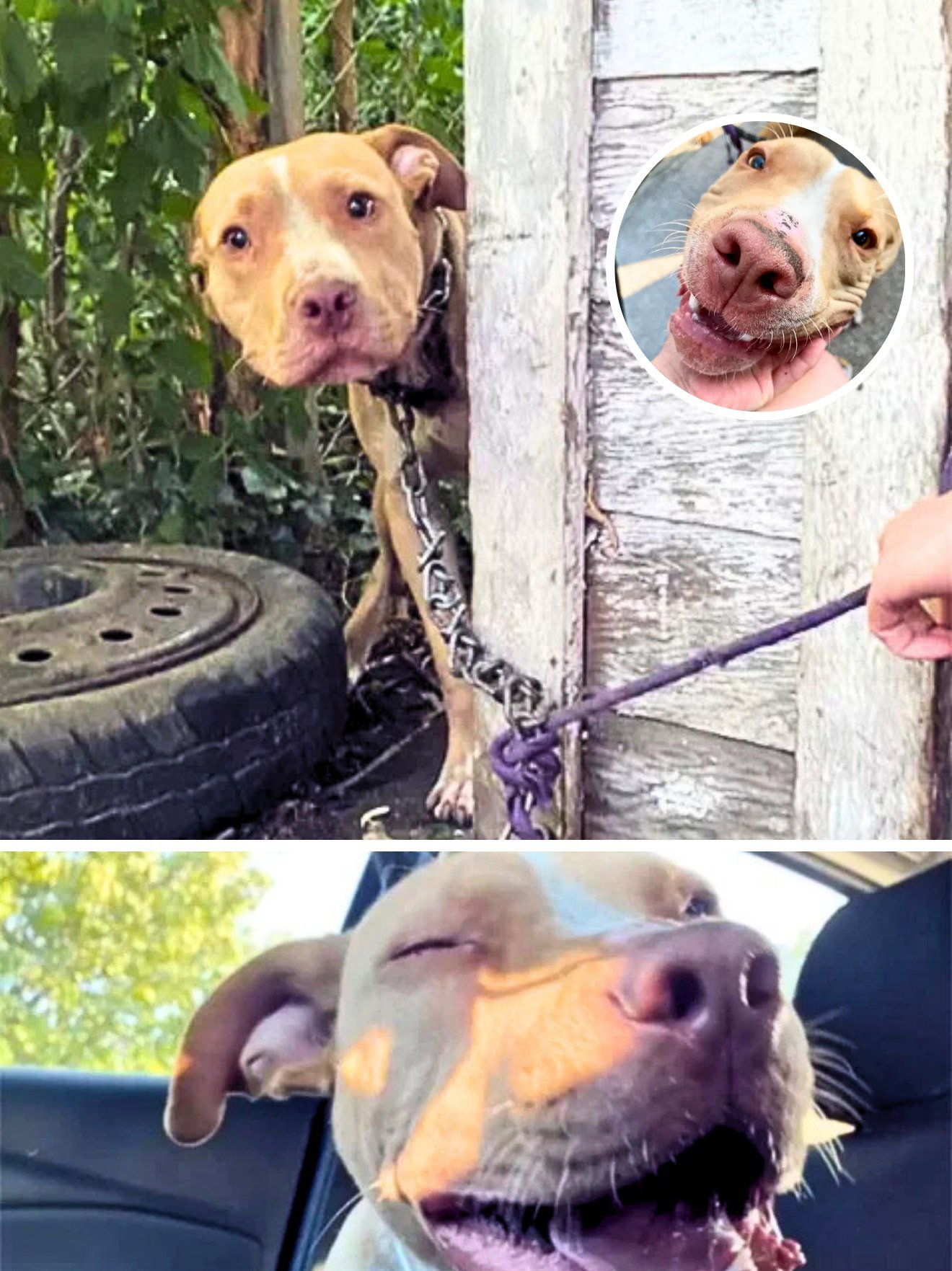 As soon as the chain holding him near the garage was loosened, Beaker dropped to the ground and rolled onto his back, eagerly asking for belly rubs and playtime. It was as if he wanted to make up for every moment of love he had missed. Unfortunately, the chain was tightly embedded around his neck and could not be removed safely on the spot, so Perkins rushed him to a veterinarian for urgent care.