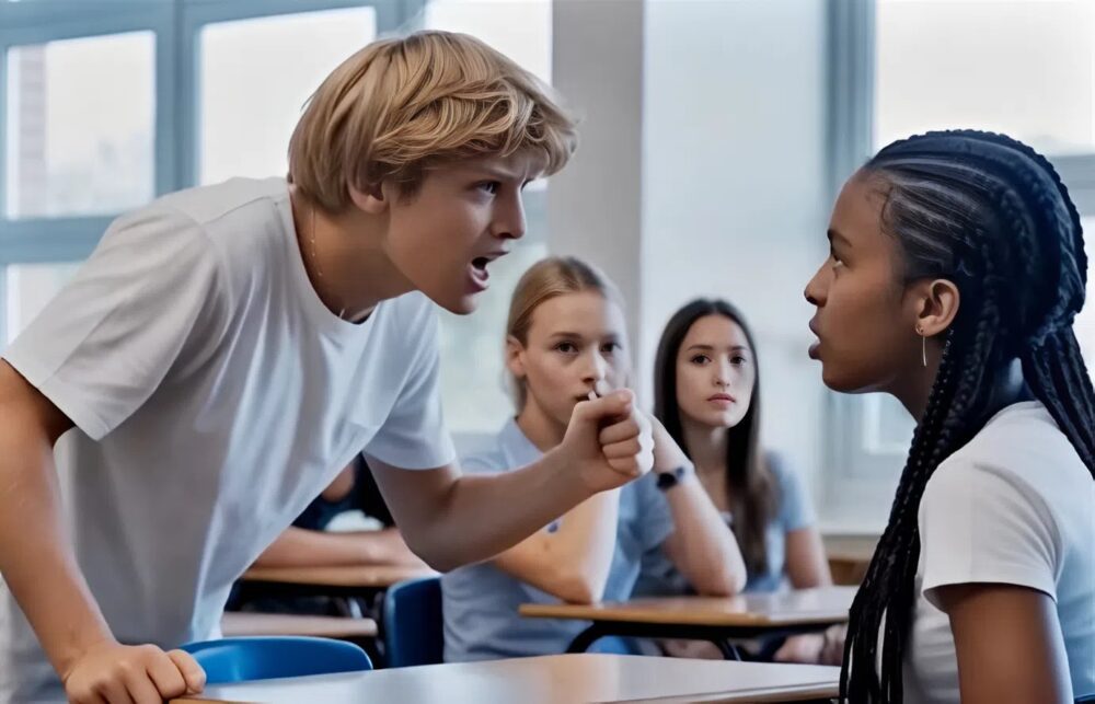 This defiance only fueled his anger. Lucas advanced, his taunts growing louder and more personal as he closed the distance between them. He reached her desk, slammed his hand down again, and then grabbed her arm, attempting to physically pull her from the classroom. It was a moment designed to humiliate, to assert dominance through intimidation. For a second, the room held its breath, anticipating tears or a struggle. What happened next, however, redefined the balance of power in the room entirely.